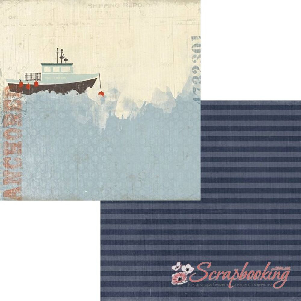 Аркуш паперу для скрапбукінгу Big boat in waves з колекції на морську тематику тематику Anchored виробника Authentique. Розмір аркуша 30*30см. Щільність паперу 220гр/м2, папір із двостороннім друком