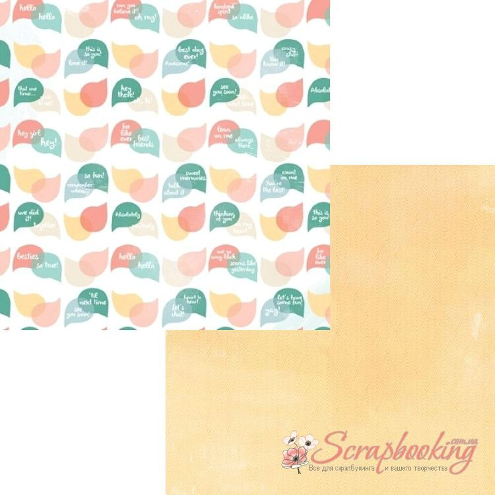 Аркуш паперу для скрапбукінгу Chit Chat з колекції Hello Again виробника Carta Bella. Розмір аркуша 30*30см. Щільність паперу 220гр/м2, папір із двостороннім друком