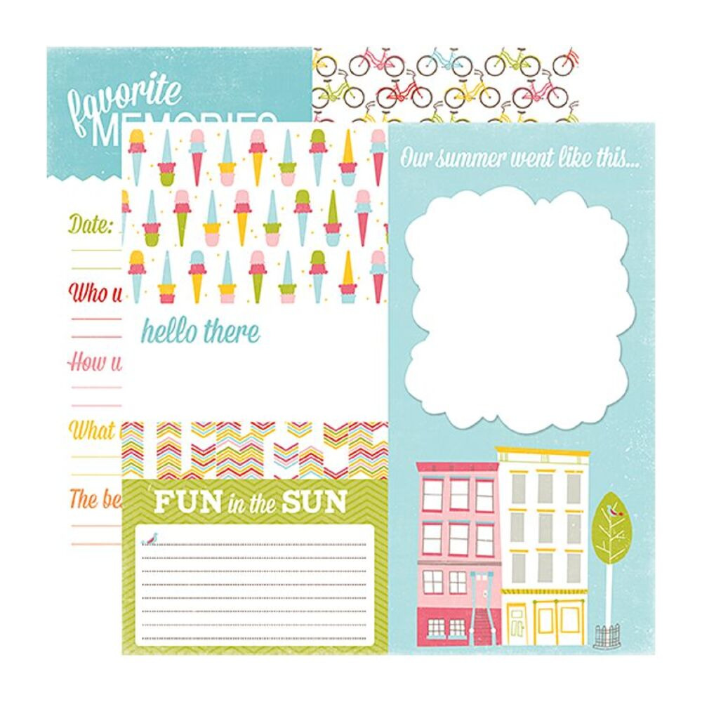 Аркуш паперу для скрапбукінгу Sidewalk з колекції Fun in the Sun виробника Echo Park. Розмір аркуша 30*30см. Щільність паперу 180гр/м2, папір із двостороннім друком