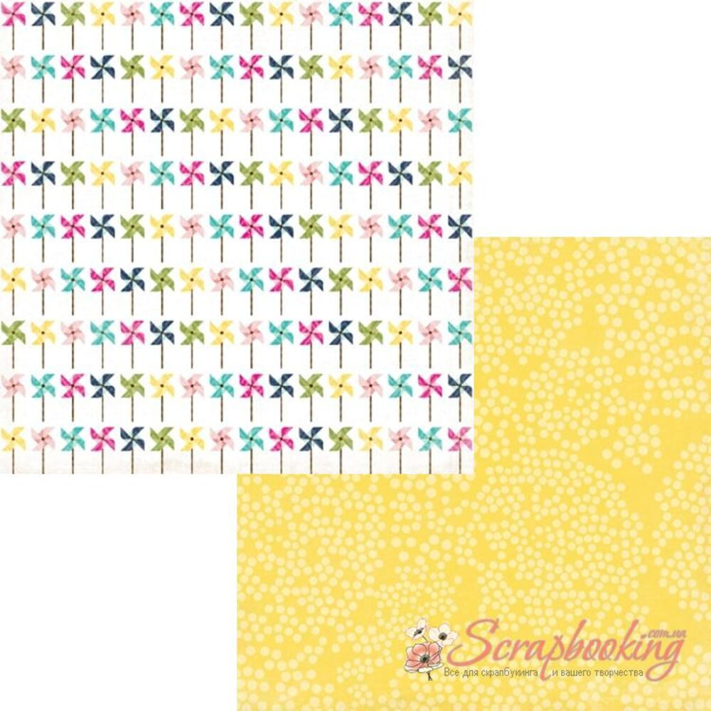 Аркуш паперу для скрапбукінгу Pretty Pinwheels з колекції Splendid Sunshine виробника Echo Park. Розмір аркуша 30*30см. Щільність паперу 180гр/м2, папір із двостороннім друком
