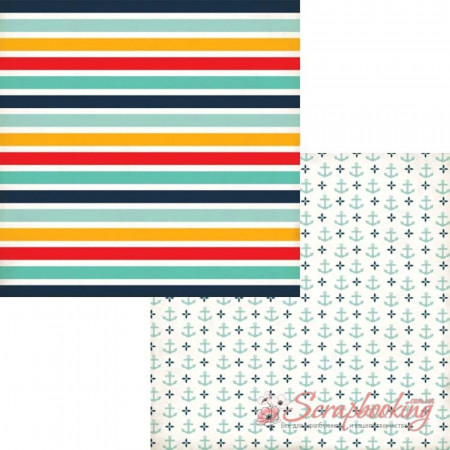 Аркуш паперу для скрапбукінгу Beach Stripe з колекції Summer Adventure виробника Echo Park. Розмір аркуша 30*30см. Щільність паперу 180гр/м2, папір із двостороннім друком