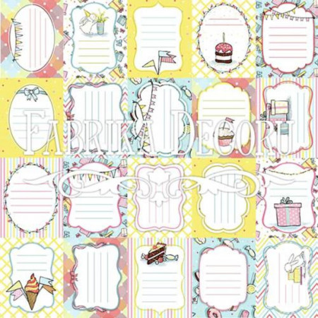 Аркуш з картками для вирізування та декорування 30 см Х 30 см, щільністю 200 г/кв.м, колекція №1 "Bunny birthday party"