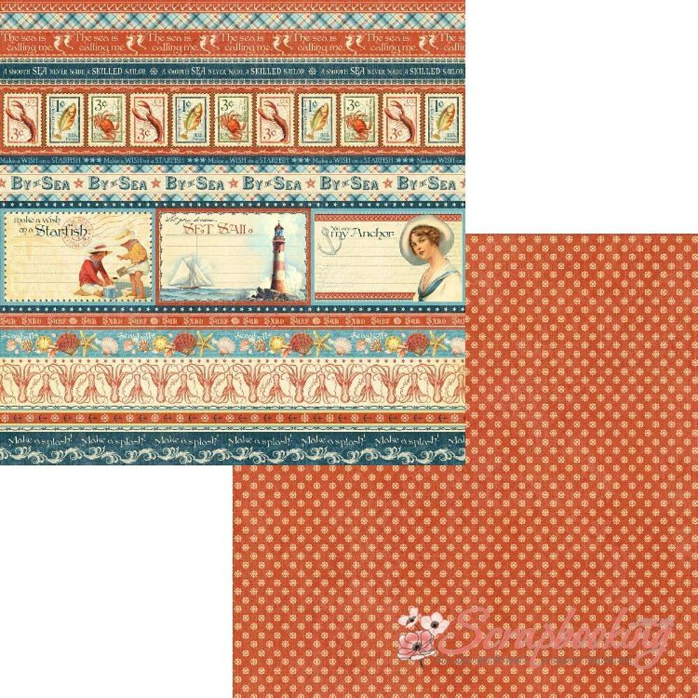 Аркуш паперу для скрапбукінгу Splash з колекції By the Sea виробника Graphic 45. Розмір аркуша 30*30см.Щільність паперу 170гр/м2, папір із двостороннім друком