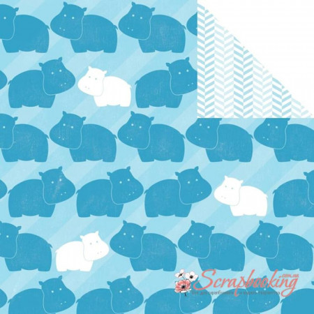 Аркуш паперу для скрапбукінгу Blue Hippopotamus з колекції My Baby Boy виробника Imaginisce. Розмір аркуша 30*30см. Щільність паперу 180гр/м2, папір із двостороннім друком