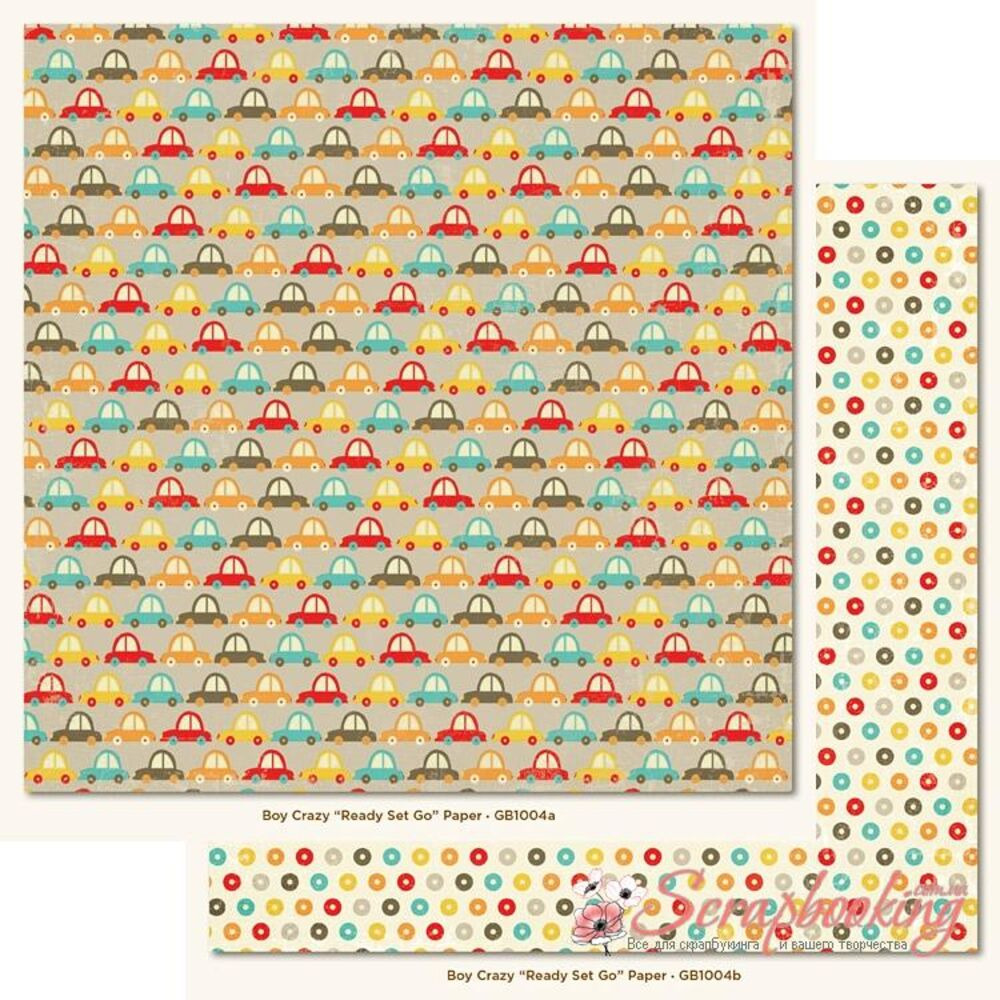 Аркуш паперу для скрапбукінгу Ready, Set, Go з колекції Boy Crazy виробника My Minds Eye. Розмір аркуша 30*30см. Щільність паперу 180гр/м2, папір із двостороннім друком