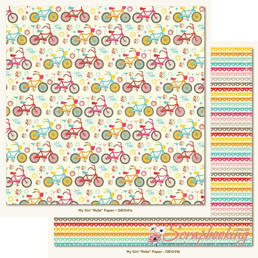 Аркуш паперу для скрапбукінгу Ride з колекції My Girl виробника My Minds Eye. Розмір аркуша 30*30см. Щільність паперу 180гр/м2, папір із двостороннім друком