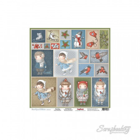 Папір для скрапбукінгу ScrapBerry "Once Upon a Winter" - Fun&Joy, 1 шт, розмір 30х30 см, SCB220605609. Односторонній папір щільністю 180 гр/м2, архівна якість.