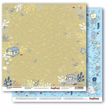 Двосторонній аркуш паперу 30*30см щільністю 190гр/м2 із колекції Морські пригоди від виробника ScrapBerry's. Подорож двох маленьких мишенят піратів Зої та Зіги морськими просторами.З цього паперу вийдуть чудові тематичні аркушівки, дитячі морські тревели буки, альбоми. Архівна якість.