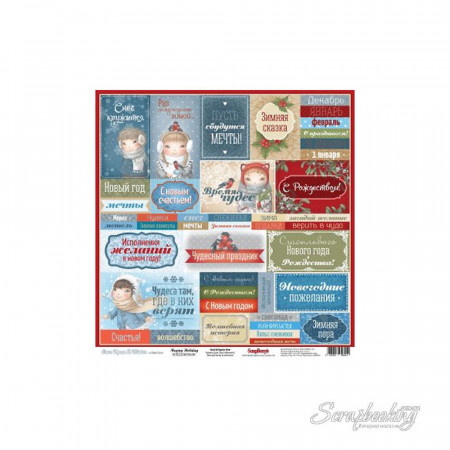Папір для скрапбукінгу ScrapBerry "Once Upon a Winter" - Happy Holiday, 1 шт, розмір 30х30 см, SCB220605608. Односторонній папір щільністю 180 гр/м2, архівна якість.