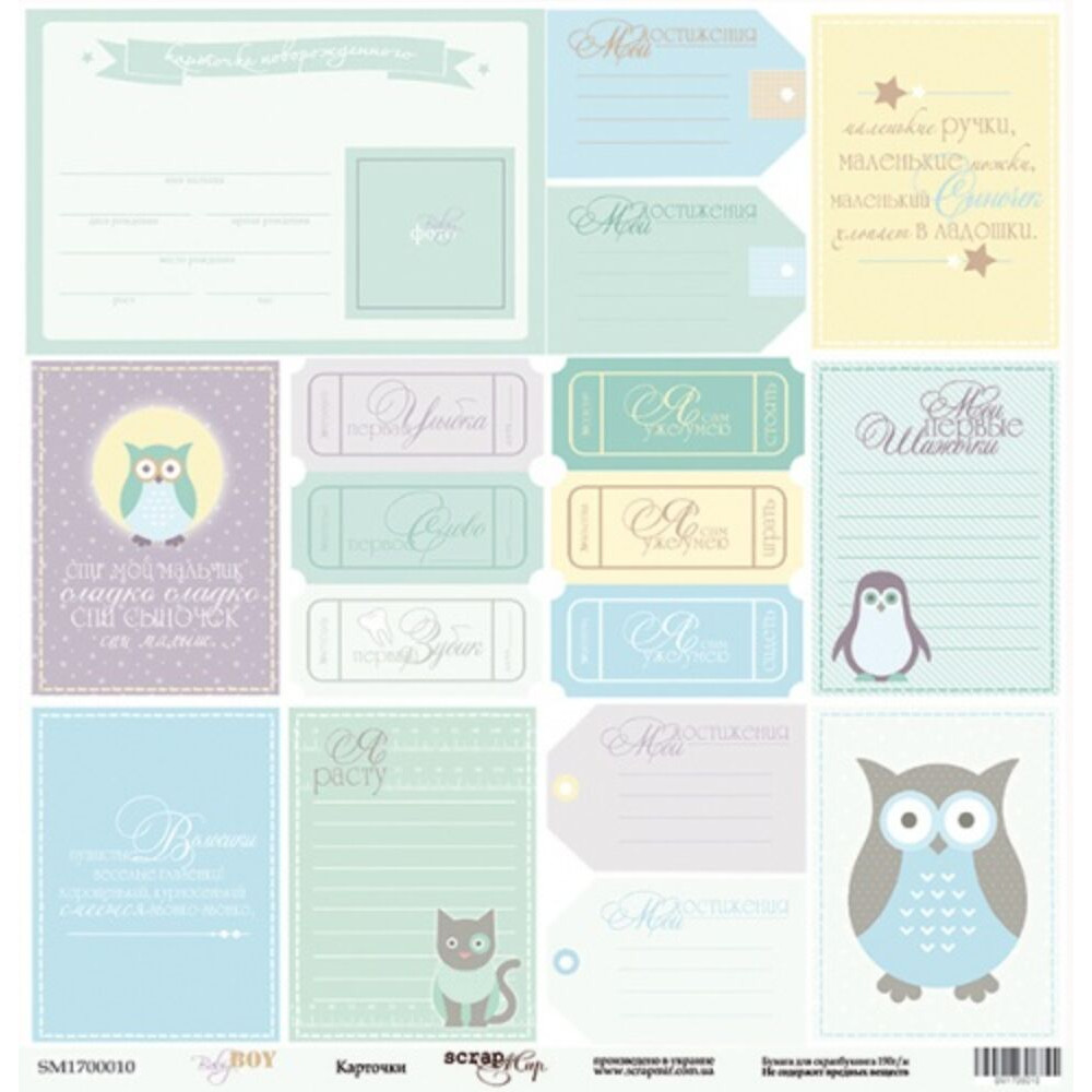 Односторонній аркуш паперу 30*30см щільністю 190гр/м2 із колекції Baby Boy від виробника Scrapmir. Використовується для виготовлення альбомів, аркушівок, подарункових коробочок. Архівна якість