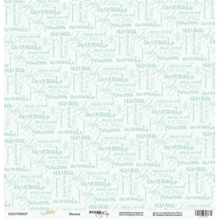 Односторонній аркуш паперу 30*30см щільністю 190гр/м2 із колекції Baby Boy від виробника Scrapmir. Використовується для виготовлення альбомів, аркушівок, подарункових коробочок. Архівна якість