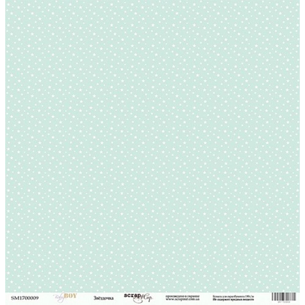 Односторонній аркуш паперу 30*30см щільністю 190гр/м2 із колекції Baby Boy від виробника Scrapmir. Використовується для виготовлення альбомів, аркушівок, подарункових коробочок. Архівна якість