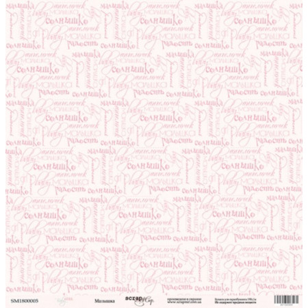 Односторонній аркуш паперу 30*30см щільністю 190гр/м2 із колекції Baby Girl від виробника Scrapmir. Використовується для виготовлення альбомів, аркушівок, подарункових коробочок. Архівна якість