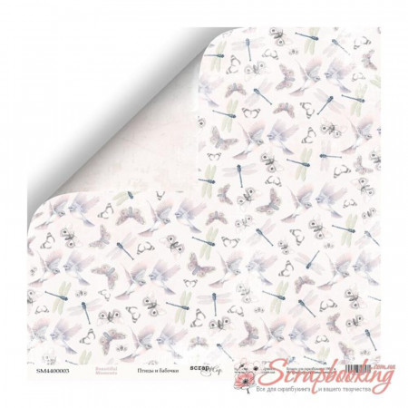 Двосторонній аркуш паперу 30*30см щільністю 190гр/м2 Птахи та Метелики з колекції Beautiful Moments від виробника Scrapmir. Використовується для виготовлення альбомів, аркушівок, подарункових коробочок. Архівна якість