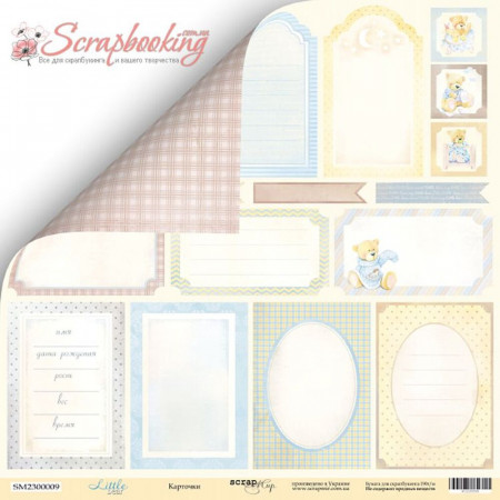 Двосторонній аркуш паперу 30*30см щільністю 190гр/м2 Картки з колекції Little Bear від виробника Scrapmir. Використовується для виготовлення альбомів, аркушівок, подарункових коробочок. Архівна якість