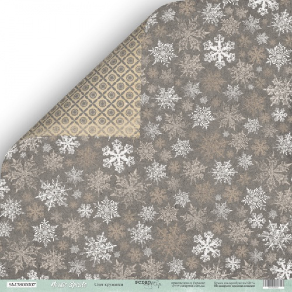 Двосторонній аркуш паперу 30*30см щільністю 190гр/м2 Сніг крутиться з колекції Nordic Spirits від виробника Scrapmir. Використовується для виготовлення альбомів, листівок, подарункових коробочок. Архівна якість