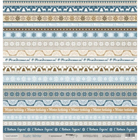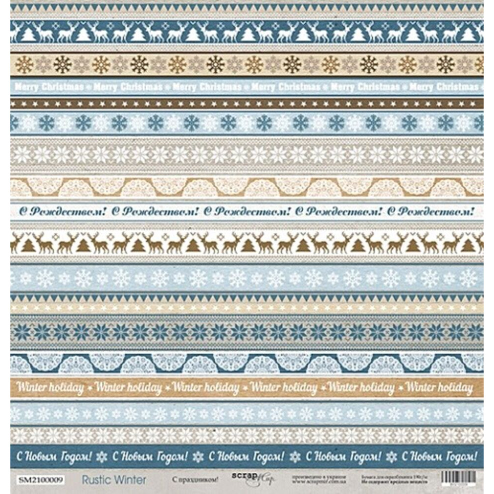 Односторонній аркуш паперу 30*30см щільністю 190гр/м2 із зимової колекції Rustic Winter від виробника Scrapmir. Поєднання традиційних зимових візерунків та чогось скандинавського, але водночас затишного. Зима Рустика - безсумнівно холодна, але має і дарує відчуття захищеності і надійності. Шовковиста структура. Архівна якість