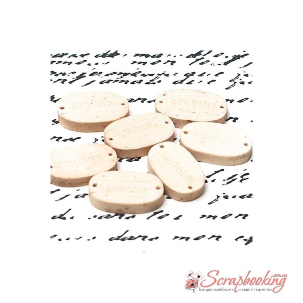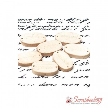 Дерев'яна бирка з написом "Hand made" розміром 17*10мм. Є отвори для пришивання.