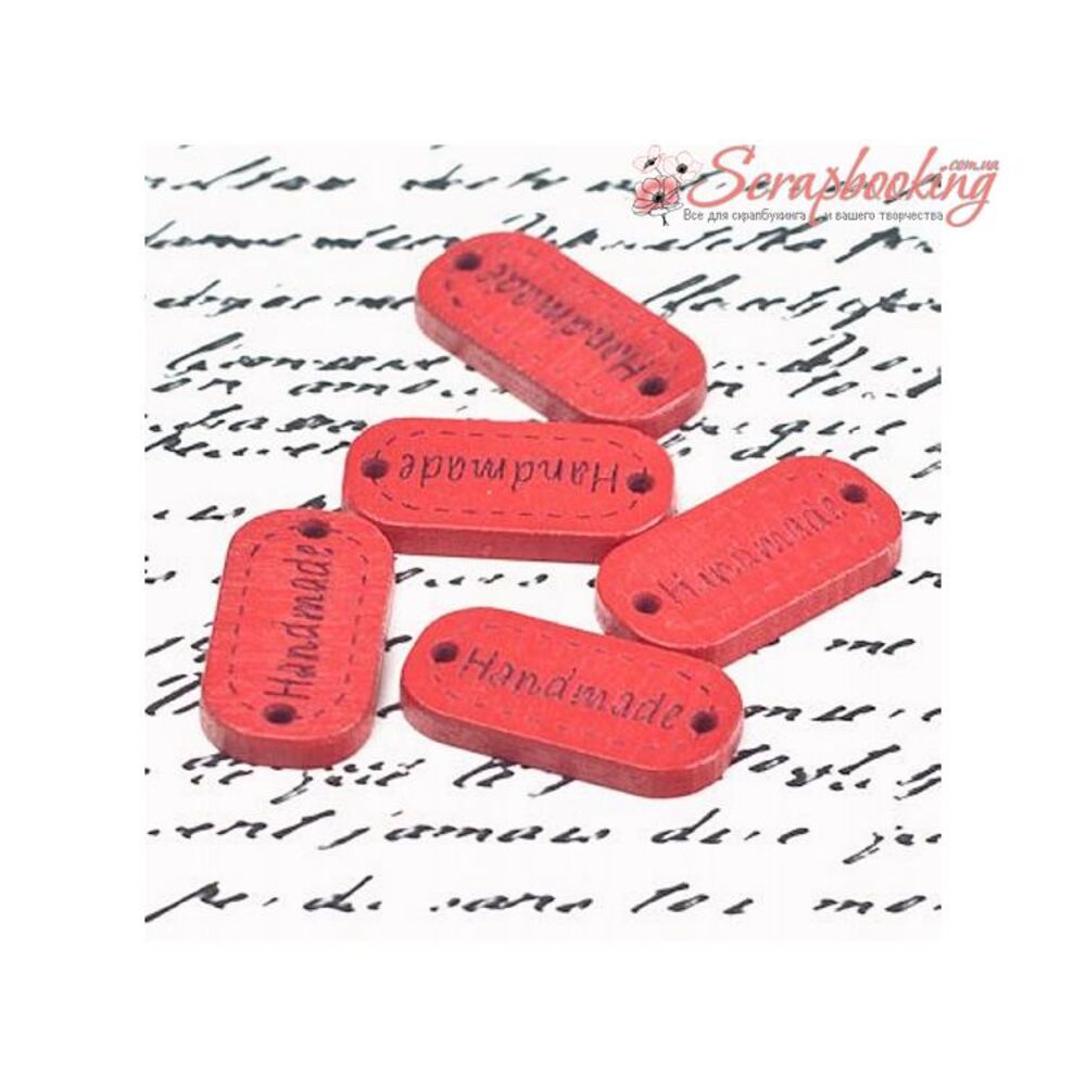 Дерев'яна бирка з написом "Hand made" розміром 24*12мм. Є отвори для пришивання.
