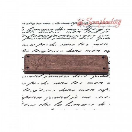 Дерев'яна бирка з написом "Hand made" розміром 64*17мм. Є отвори для пришивання.