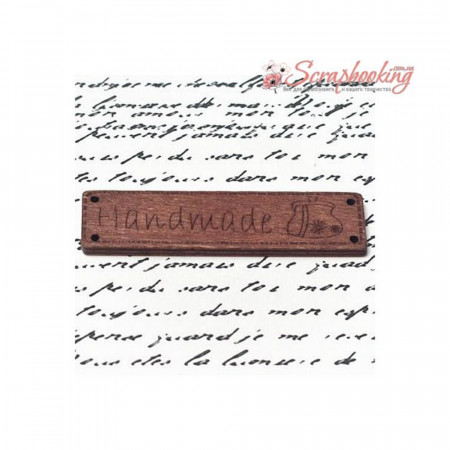 Деревянная бирка с надписью "Hand made" размером 64*17мм. Есть отверстия для пришивания.