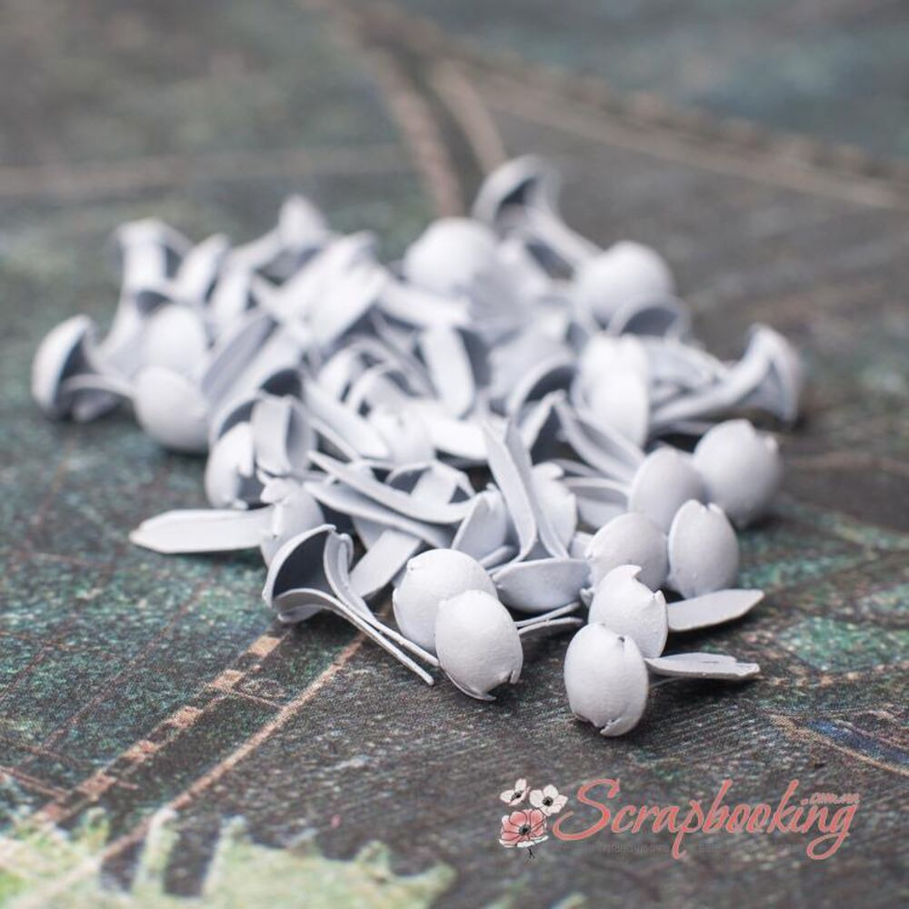 Брадси білого кольору у вигляді цвяхів. Діаметр капелюшка 5мм. Висота ніжки 9мм. В упаковці 50шт.