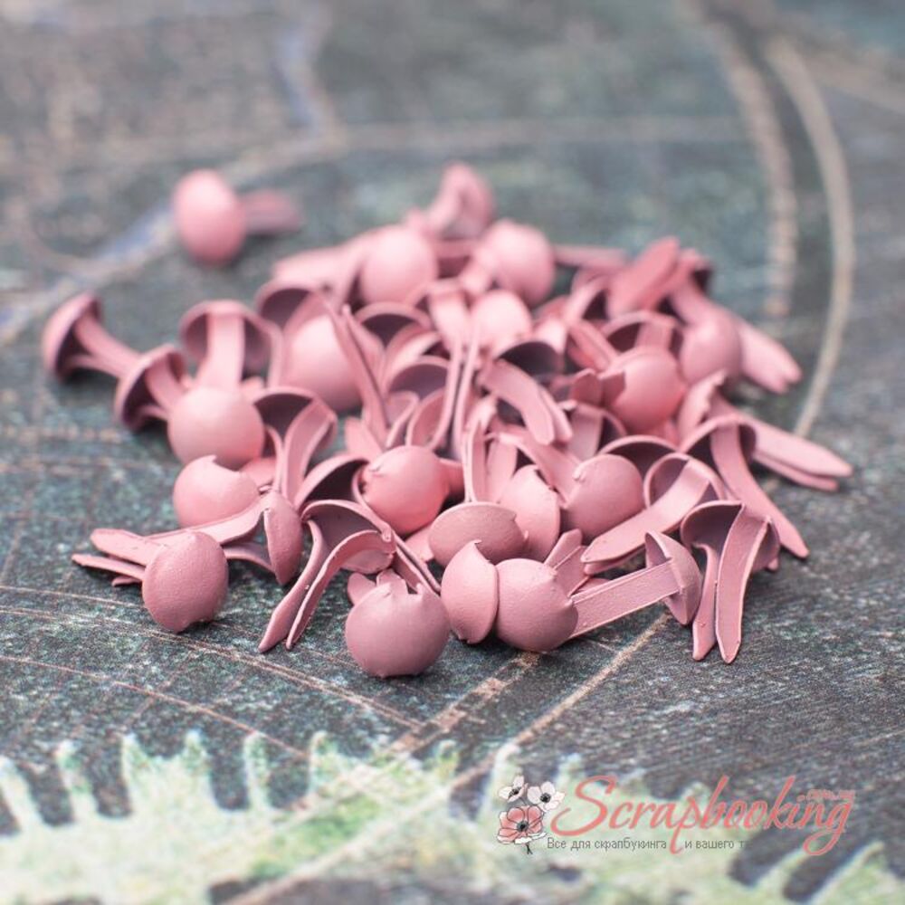 Брадси рожевого кольору у вигляді цвяхів. Діаметр капелюшка 5мм. Висота ніжки 9мм. В упаковці 50шт.