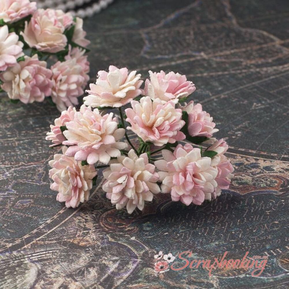 Букет паперових декоративних мініатюрних айстрів ручної роботи біло-рожевого кольору. У букеті 10 бутонів айстр діаметром 15мм. Довжина стебла 4см.