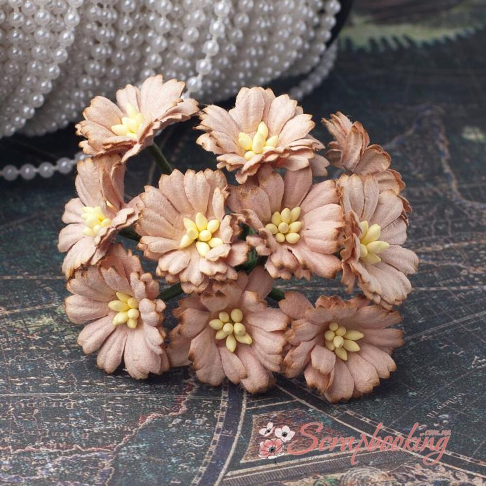 Букет паперових декоративних гвоздичок ручної роботи тютюнового кольору. У букеті 10 бутонів гвоздичок діаметром 25мм. Довжина стебла 7...8см.
