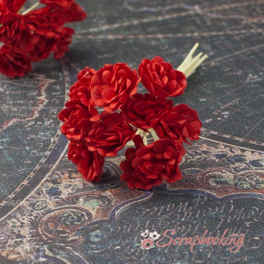 Букет паперових декоративних гіпсофіл ручної роботи червоного кольору. У букеті 10 бутонів діаметром 10мм. Довжина стебла 4...5см.