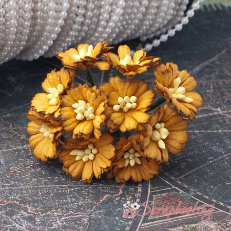 Букет бумажных декоративных гвоздичек ручной работы коричневого цвета. В букете 10 бутонов гвоздичек диаметром 25мм. Длина стебля 7...8см.