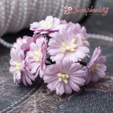 Букет бумажных декоративных гвоздичек ручной работы светло-сиреневого цвета. В букете 10 бутонов гвоздичек диаметром 25мм. Длина стебля 7...8см.