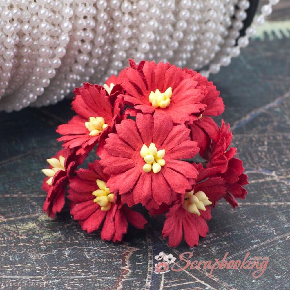 Букет декоративних гвоздичок ручної роботи червоного кольору. У букеті 10 бутонів гвоздичок діаметром 25мм. Довжина стебла 7...8см.