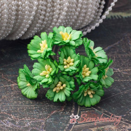 Букет паперових декоративних гвоздичок ручної роботи зеленого кольору. У букеті 10 бутонів гвоздичок діаметром 25мм. Довжина стебла 7...8см.