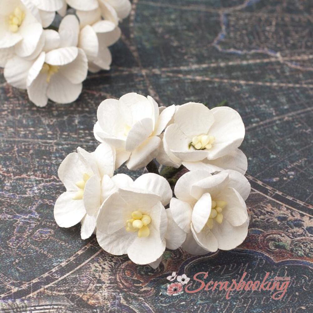 Букет паперових декоративних квітів вишні ручної роботи кольору шампань. У букеті 5 бутонів квітів вишні діаметром 25мм. Довжина стебла 8см.