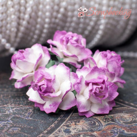 Букет бумажных роз ручной работы бело-малинового цвета. В букете 5 бутонов роз диаметром 30мм. Длина стебля 6см.