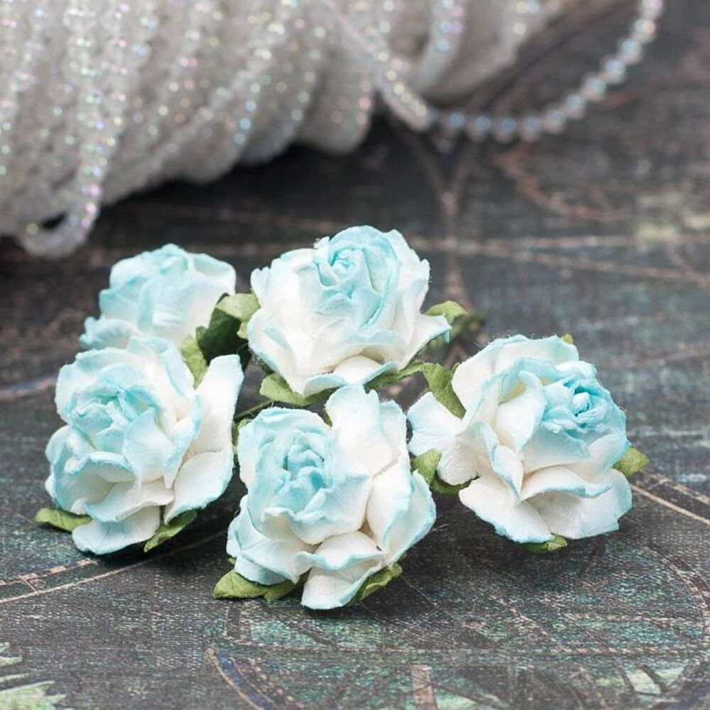 Букет бумажных роз ручной работы бело-бирюзового цвета. В букете 5 бутонов роз диаметром 25мм. Длина стебля 6см.