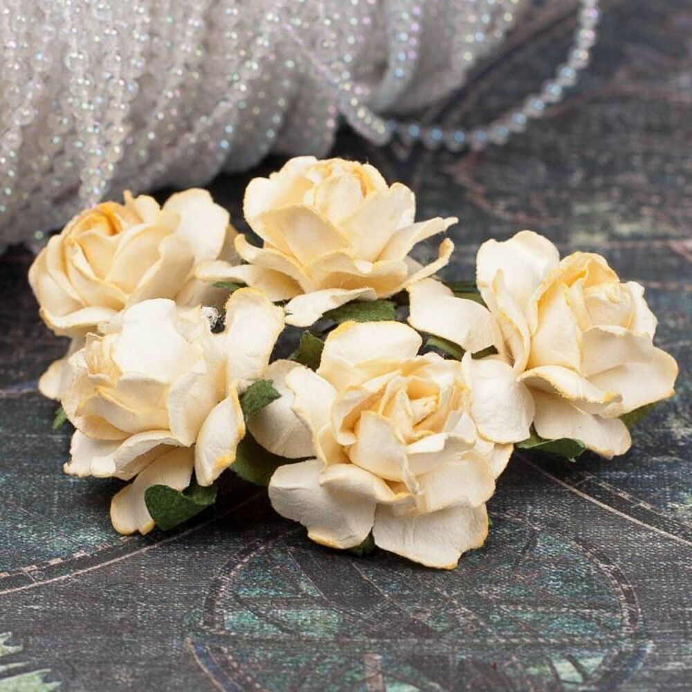 Букет бумажных роз ручной работы кремового цвета. В букете 5 бутонов роз диаметром 30мм. Длина стебля 6см.