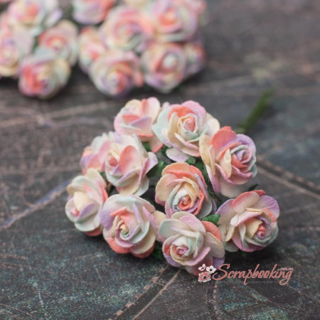 Букет бумажных розочек ручной работы радужного цвета. В букете 10 бутонов роз диаметром 15мм. Длина стебля 6...7см