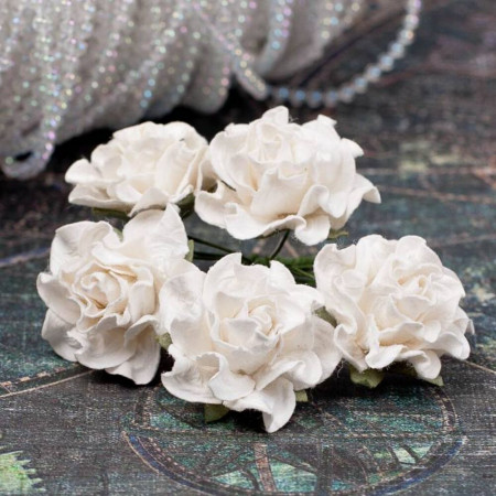Букет бумажных декоративных роз ручной работы цвета шампань. В букете 5 бутонов роз диаметром 30мм. Длина стебля 7см.