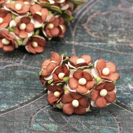 Букет бумажных цветов Sweetheart ручной работы табачного цвета. В букете 10 бутонов цветков диаметром 15мм. Длина стебля 4см.