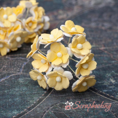 Букет паперових квітів Sweetheart ручної роботи жовтого кольору. У букеті 10 бутонів квіток діаметром 15мм. Довжина стебла 4см.