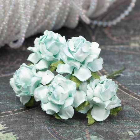 Букет паперових троянд ручної роботи аквамарин кольору. У букеті 5 бутонів троянд діаметром 25мм. Довжина стебла 6см.