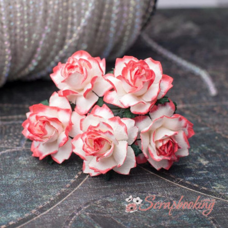 Букет паперових троянд ручної роботи біло-червоного кольору. У букеті 5 бутонів троянд діаметром 25мм. Довжина стебла 6см.