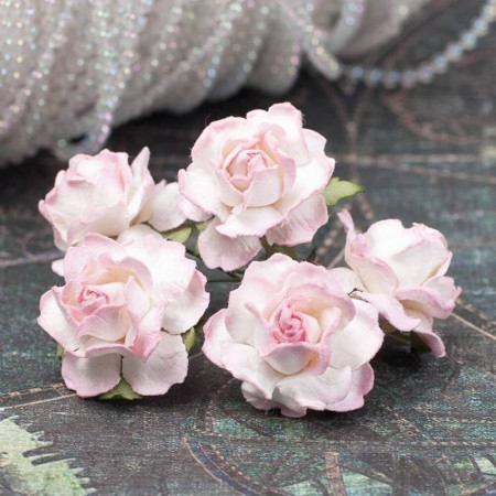 Букет паперових троянд ручної роботи біло-рожевого кольору. У букеті 5 бутонів троянд діаметром 25мм. Довжина стебла 6см.