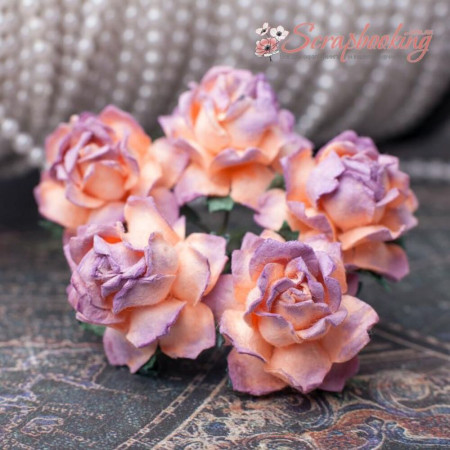 Букет паперових троянд ручної роботи кремово-фіолетового кольору. У букеті 5 бутонів троянд діаметром 25мм. Довжина стебла 6см.