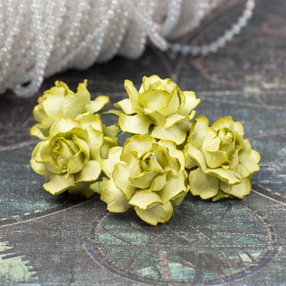 Букет паперових троянд ручної роботи кольору лайм. У букеті 5 бутонів троянд діаметром 25мм. Довжина стебла 6см.