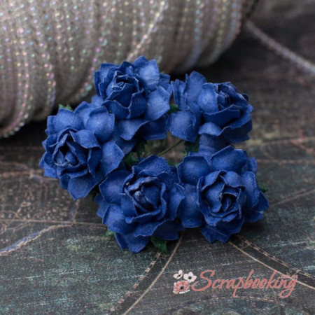 Букет паперових троянд ручної роботи кольору ультрамарин. У букеті 5 бутонів троянд діаметром 25мм. Довжина стебла 6см.