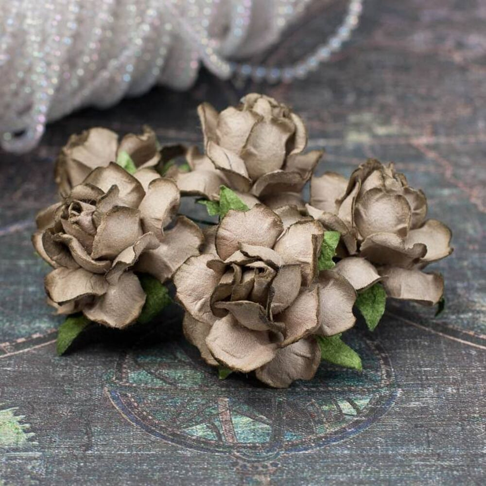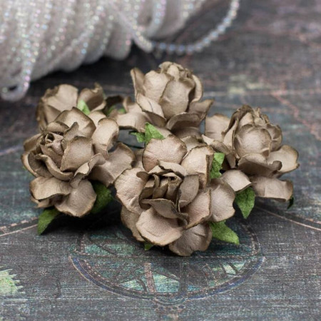 Букет паперових троянд ручної роботи темного оливкового кольору. У букеті 5 бутонів троянд діаметром 30мм. Довжина стебла 6см.