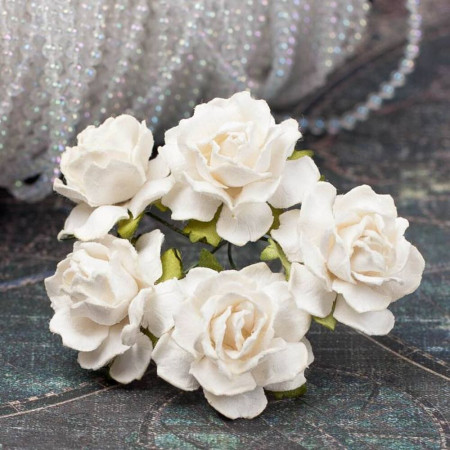 Букет паперових троянд ручної роботи кольору шампань. У букеті 5 бутонів троянд діаметром 30мм. Довжина стебла 6см.